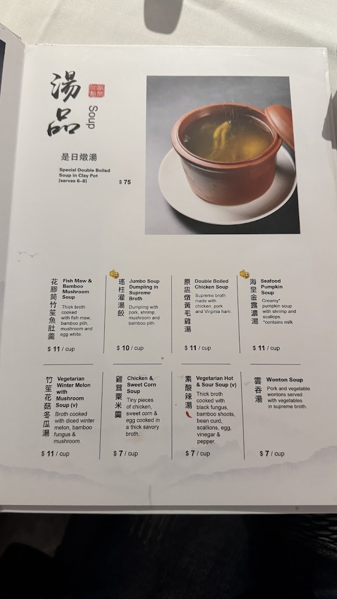 - Signature Dishes: Savor the Ginger And Scallion Crab and Roasted Peking Duck, both dishes reflect the chef's commitment to quality ingredients and authentic recipes.
